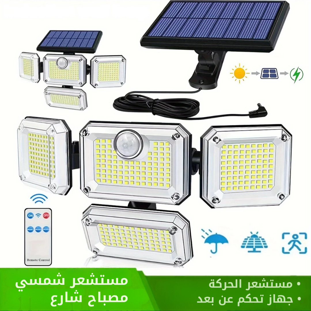 مصباح شمسي بأربعة رؤوس قابلة للتعديل